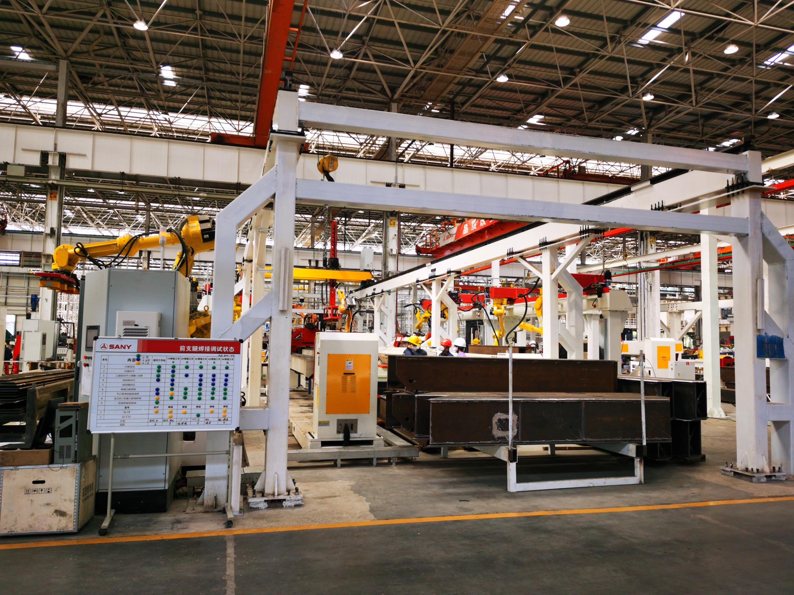 根據MES信息化需求,對中小板立庫提出需求,由AGV進行配送至上料工位,機器人進行自動上料,在分揀線上通過視覺比照、二維碼識別等技術手段,將泵車生產所需的各種型號工件進行分類,機器人下料抓取入框,然后由AGV小車配送至各需求工位。