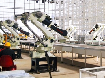 根據(jù)MES信息化需求,對(duì)中小板立庫(kù)提出需求,由AGV進(jìn)行配送至上料工位,機(jī)器人進(jìn)行自動(dòng)上料,在分揀線上通過視覺比照、二維碼識(shí)別等技術(shù)手段,將泵車生產(chǎn)所需的各種型號(hào)工件進(jìn)行分類,機(jī)器人下料抓取入框,然后由AGV小車配送至各需求工位。